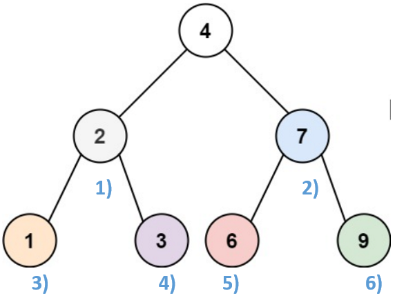 코드 상으로 self.invertTree(root.right)가 먼저 시작하므로